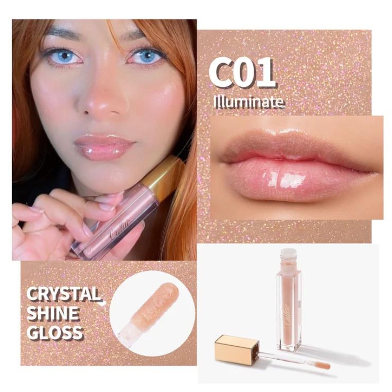 | Crystal Shine Gloss | C01-ILLUMINATE, C03-ONE LUCKY GIRL, C04-STAR QUALITY, C05-WOAH, C06-PINK GLAM, C07-BRONZE, C08-GLAMORIZE, C09-NUDE LOVE, C10-DAY DREAM, C11-BABY DOLL, C12-SECRET, C13-CHERRY SEXY, C14-FAB |